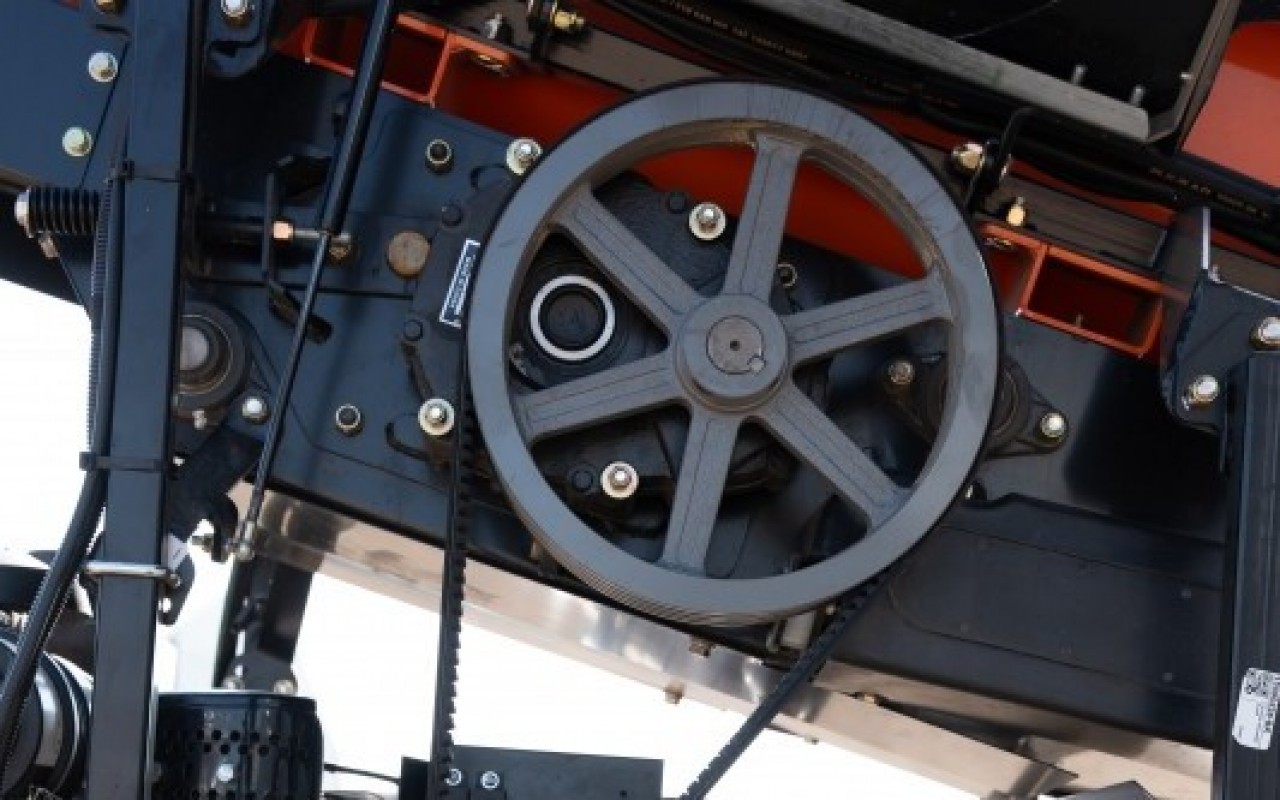 Direct drive gearbox. Mounted on the driver roller, this gearbox features fewer working parts, resulting in reduced maintenance and downtime. Its triple-groove drive belt provides a superior grip, reducing wear and allowing it to work longer and harder before needing replacement.